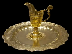 verb [vt. 及物动词]镀金(gild 的过去式和过去分词) - There are four gilt wood torchieres flanking the fireplaces.