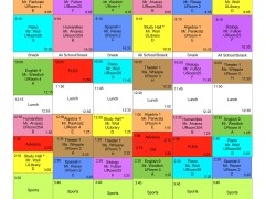 noun [抽象名词]计划(表),进度表;<美>(公共汽车、火车等的)时间表;(价目、费用等的)清单,一览表;(电视或电台的)节目表;<美>(学校的)课程表;<法律> 附件(尤指表格、单据等);(英国所得税制的)报税单 - He has been forced to adjust his schedule.