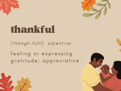 adjective [原级]感谢的,感激的;(表示)感谢(或感激)的 - Most of the time I'm just thankful that I've got a job.