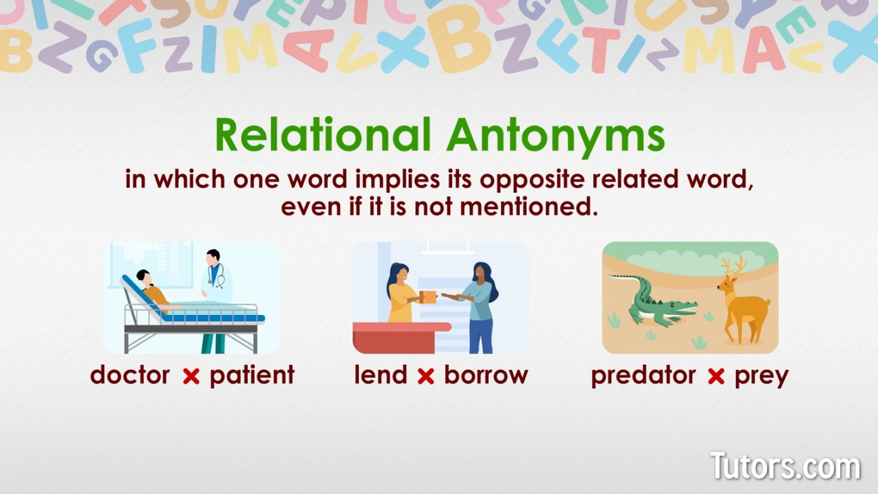 - The term antonymy is used for oppositeness of meaning, words that are opposite in meaning are antonyms. 反义关系用以指意义的相反。 意义上相反的词叫反义词。