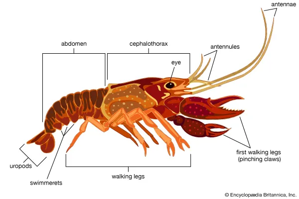 is a small shellfish with five pairs of legs which lives in rivers and streams. You can eat some types of