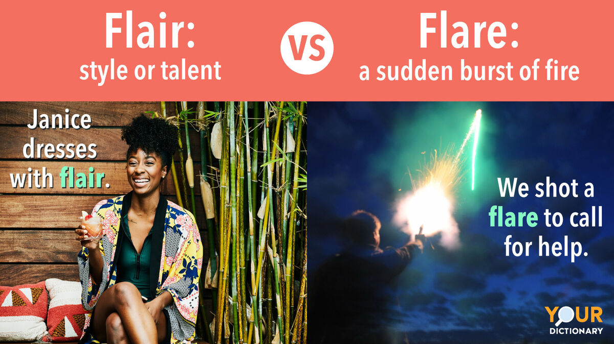 noun [抽象名词]闪耀的光;闪光装置,信号弹;突然发怒,发脾气;喇叭裤;(发炎等症状的)突然复发;(太阳等恒星的)耀斑;(底片上的)翳雾斑;船舷的翻边