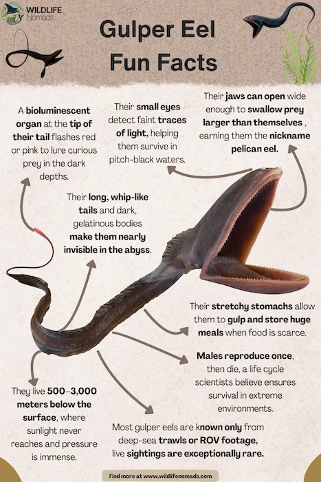 A gulper eel can eat an animal larger than itself and accommodate it an expandable stomach.它能一口咽下比它还大的一只海底动物并且调节它的胃变得扩大起来.