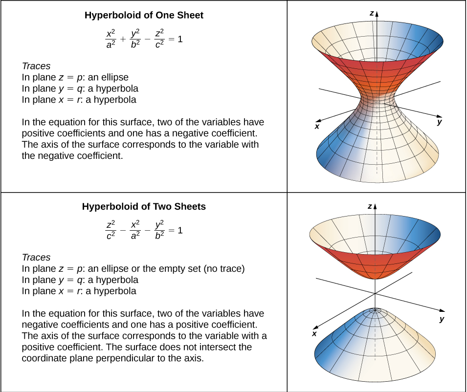 🇬🇧/haɪˈpɜːbəˌlɔɪd/ 🇺🇸/haɪˈpɜːrbəˌlɔɪd/Equations x²/a² + y²/b² – z²/c² = 1 (one sheet) or x²/a² – y²/b² – z²/c² = 1 (two sheets) where a, b, and c are constants 双曲线体
