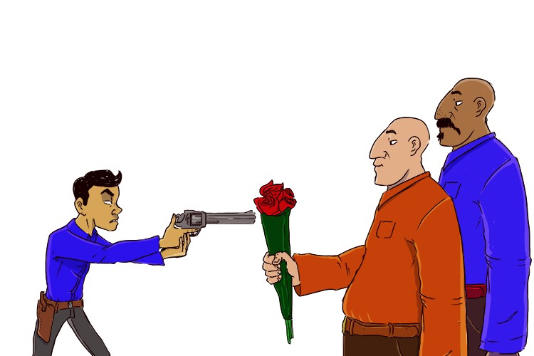 , you behave kindly and generously toward someone, especially after defeating them or being treated badly by them.