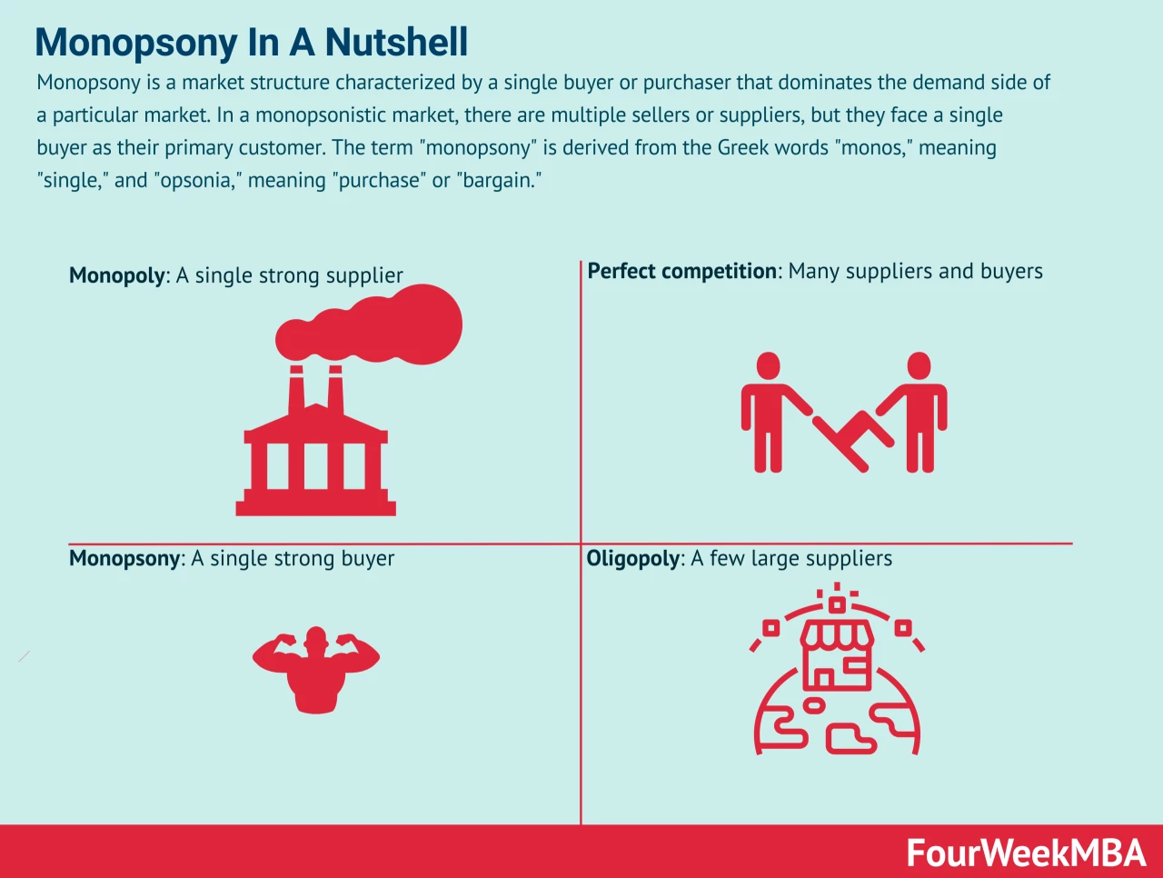As with any monopsony — one buyer, many sellers — the sellers are going to have their prices dictated by the buyer. 任何意义上的垄断—一个买家,许多卖家——结果都是:卖家不得不让买家来确定价格。