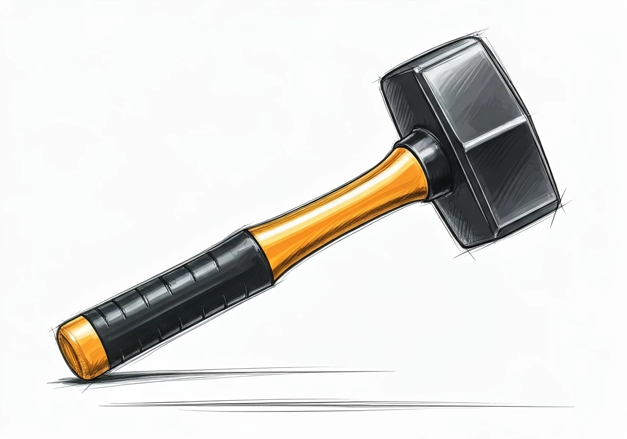(medicine) a small hammer with a rubber head used in