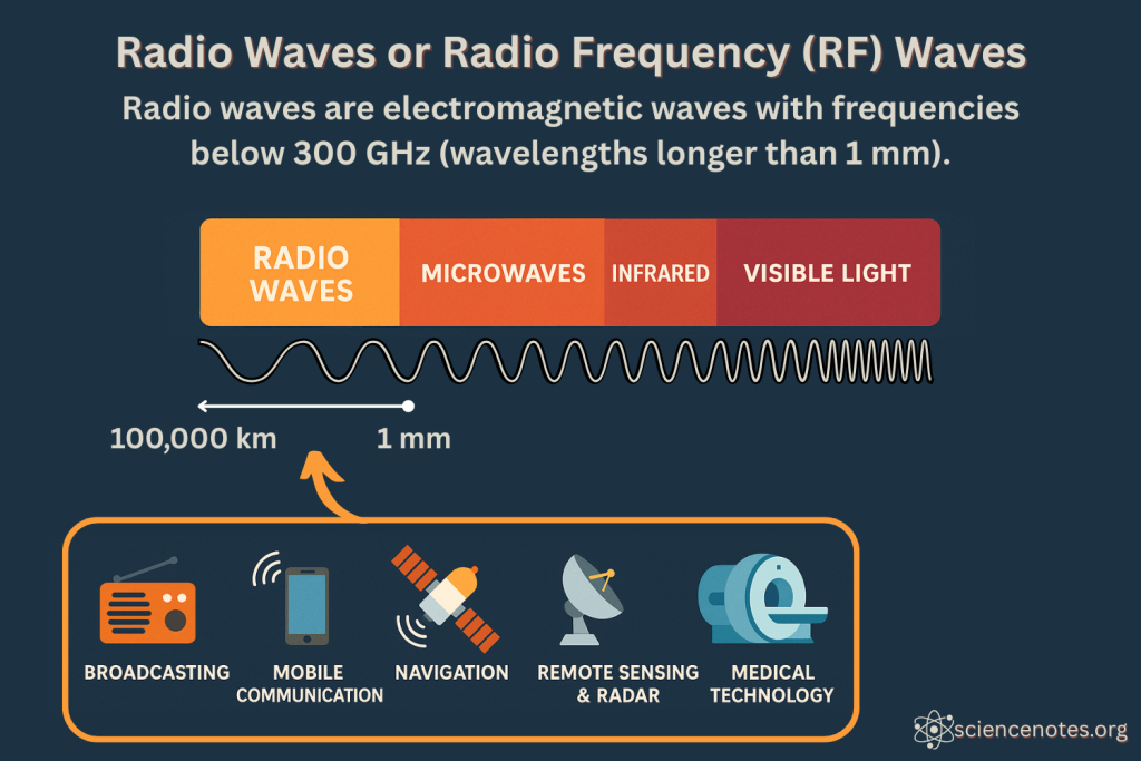 a frequency or band of frequencies that lie in the range 10 kilohertz to 300 000 megahertz and can be used for radio communications and broadcasting 无线电频率 (Abbreviations rf, RF)