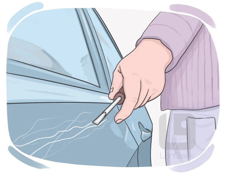 noun [专属名词](某人皮肤上的)划痕,划伤;刮痕,划痕;抓,挠;刮擦声;唱片的嚓嚓声(指唱片纹道与唱针的摩擦噪声);刮擦(多用于快板乐中,用手制止唱片转动,使其来回移动发出有节奏的嚓嚓声的技巧);(高尔夫)零让步(表明选手不弱,能在场上达到规定击球的次数);<非正式> 钱