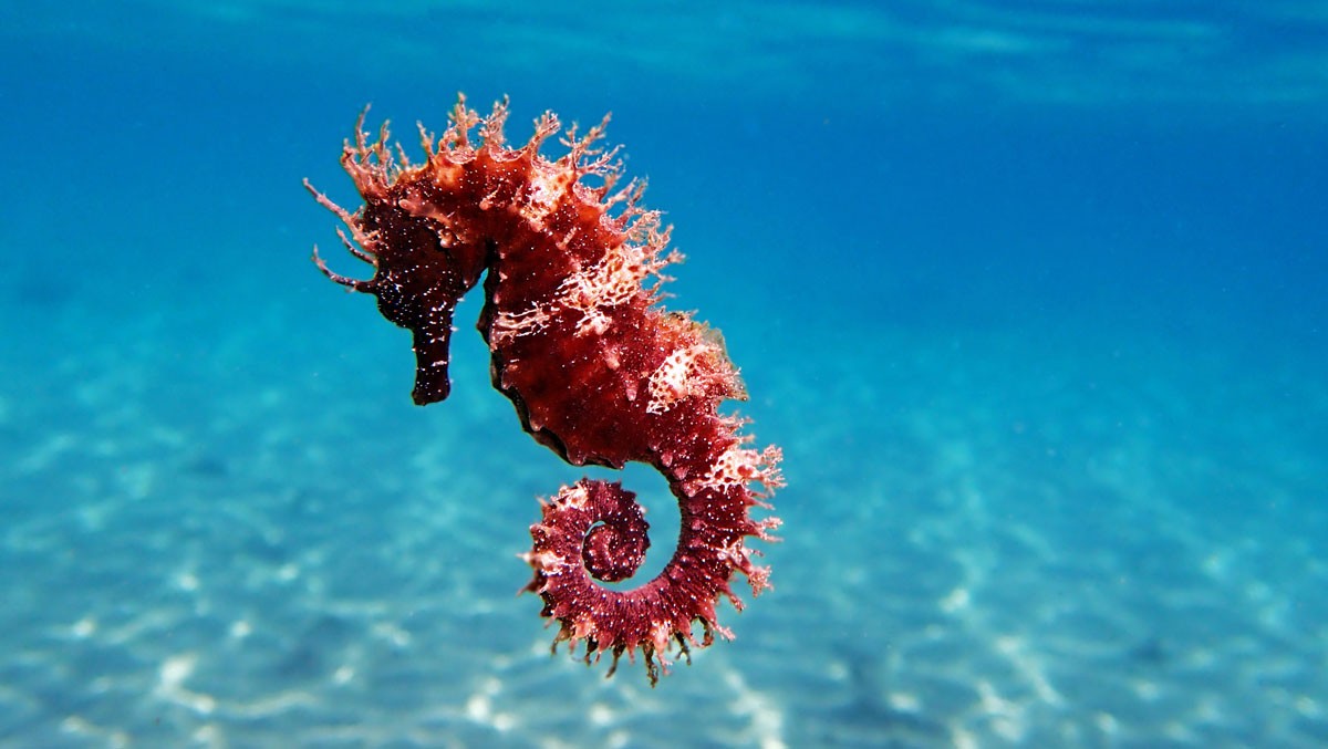 I saw a beautiful sea horse while snorkeling in the coral reef.